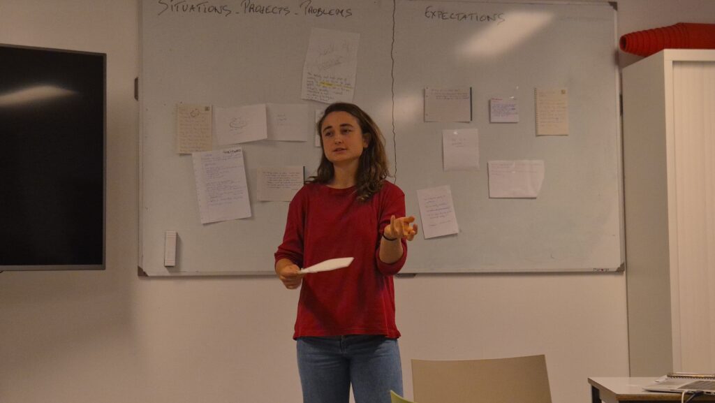 Solamente una de las personas presentes durante las jornadas era nativa de la lengua común de trabajo. A la hora de jugar con los matices de las palabras, sus zonas grises y significados más sutiles, aunque nos sintamos cómodos en una segunda lengua es normal que echemos en falta expresiones a las que solemos recurrir. Tampoco es de extrañar que la traducción de palabras clave empañen los matices con los que esa misma palabra se usa en la otra lengua. Por lo tanto, es interesante generar conceptos comunes y absorber cómo el lenguaje se desarrolla en el idioma en el que solemos trabajar y en otros en los que nos queremos comunicar.