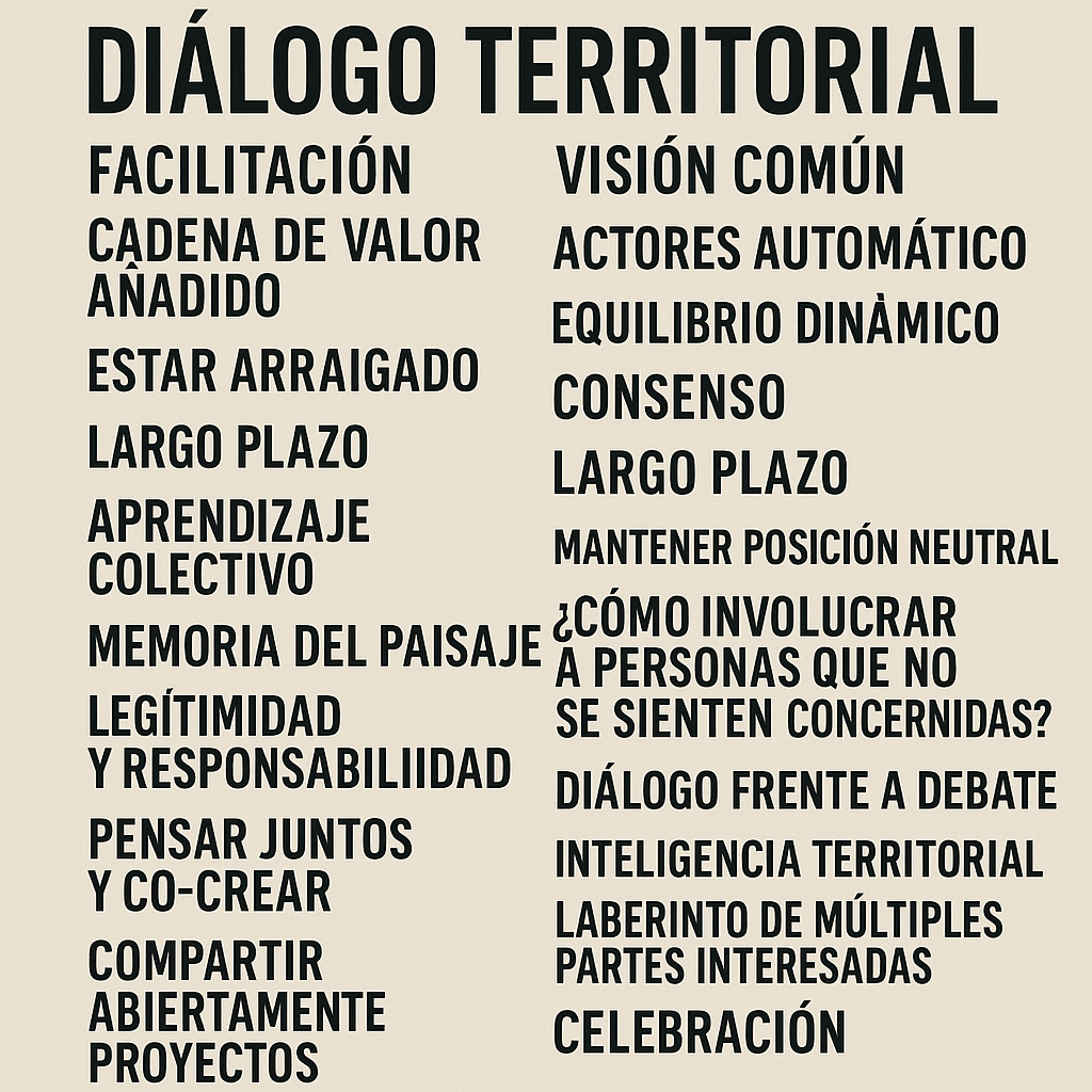 Cerrando, el proceso de diálogo territorial se desarrolla con vistas a que las partes continúen en comunicación una vez el agente externo desaparece, manteniéndose el diálogo en el territorio. Esto tiene todo el sentido y encaja perfectamente con el rol de DILAS, no se trata de generar dinámicas de dependencia sino de empoderar al territorio en su propia inteligencia y capacidades.