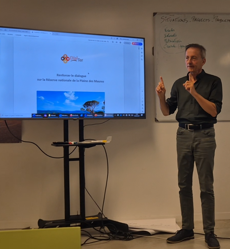 centrado en la co-construcción de un diagnóstico y de soluciones por parte de los agentes involucrados. Este tiene como objetivos la resolución de un conflicto o problema y la mejora de las relaciones entre las partes. La formación fue impartida por Philippe Barret, de la consultora francesa Geyser, que trabaja en la mejora y aplicación del diálogo territorial y los saberes locales para la transición. Su amplia experiencia se unió durante las jornadas con la de los participantes, para crear un mosaico de aprendizaje mutuo.